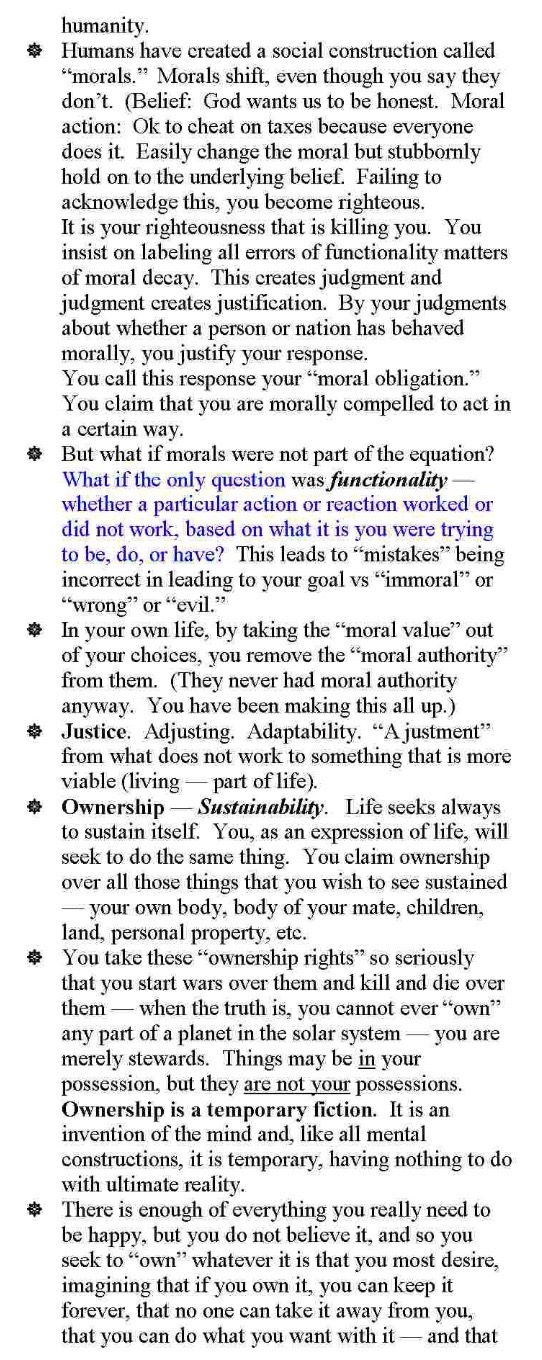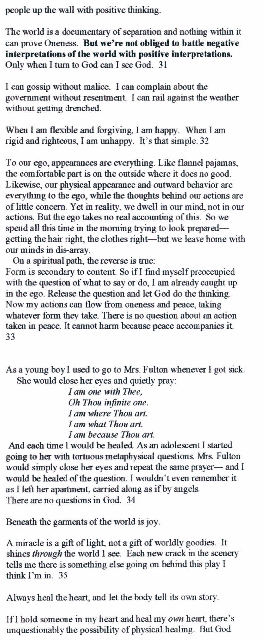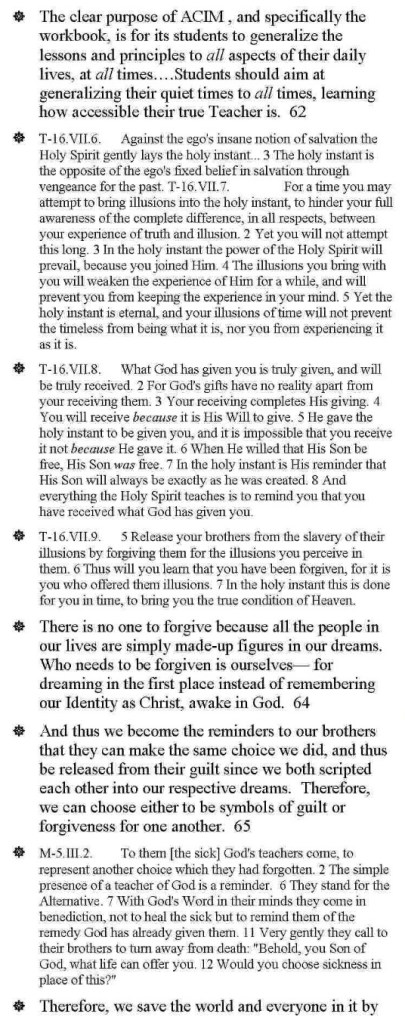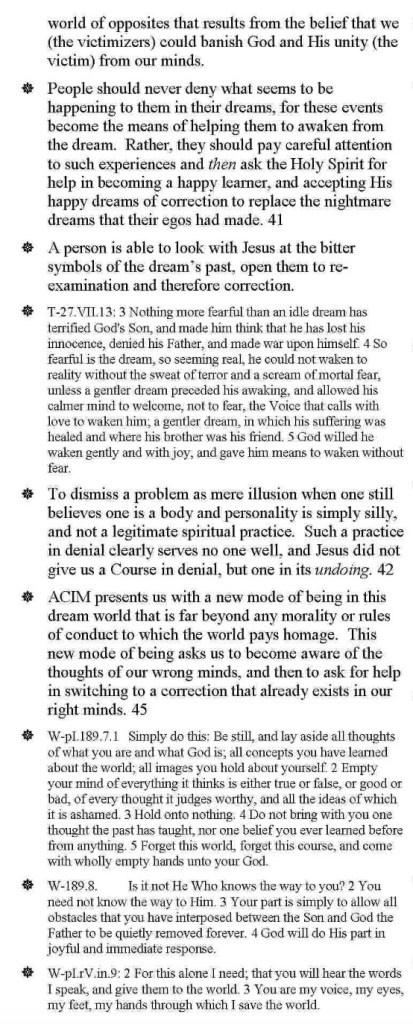 - N. Since “the sun shines equally on all” our “purpose” is to come in to the Light – and remain there “praying without ceasing.” By listening more consistently to the Holy Spirit and Christ’s guidance, we are better able to discern God’s Love and Present Reality from the dream of suffering from which Adam never awoke.
