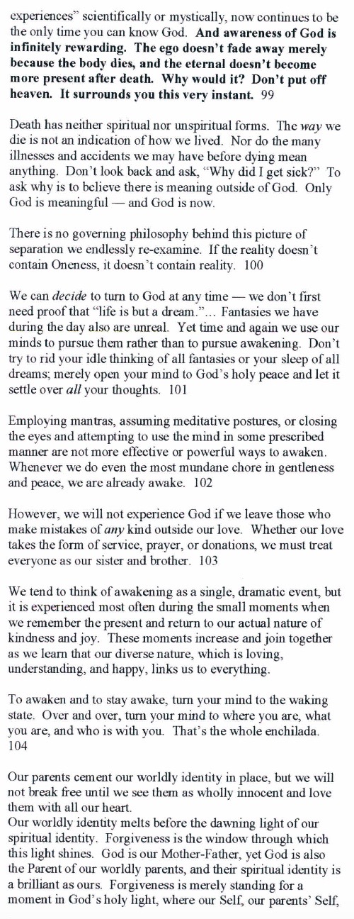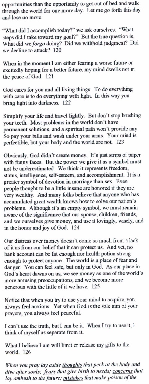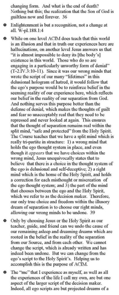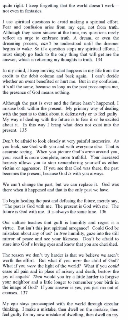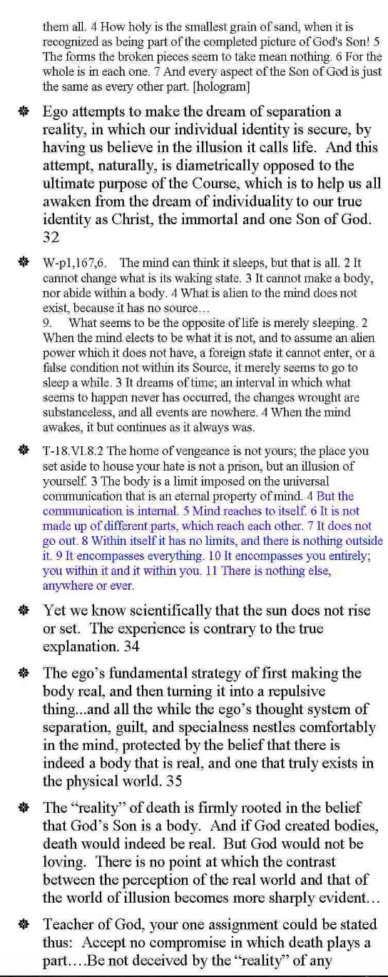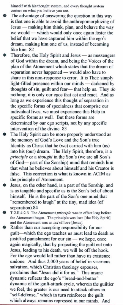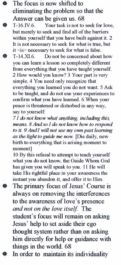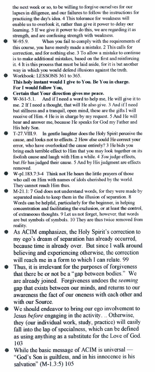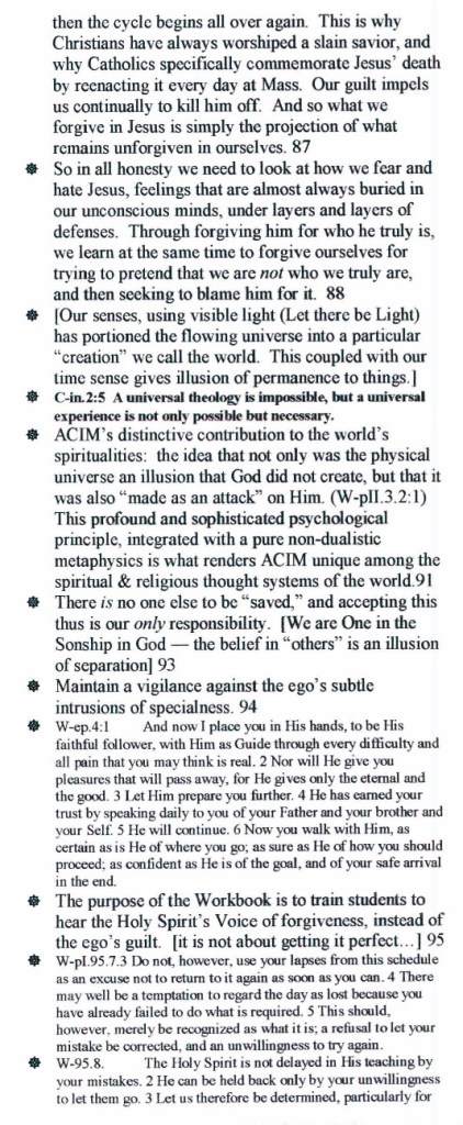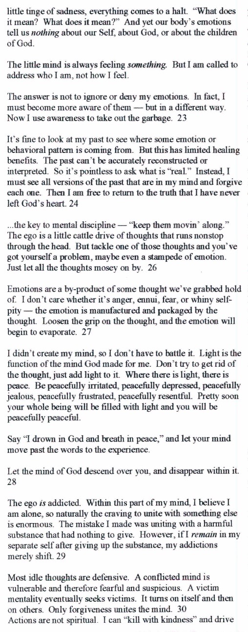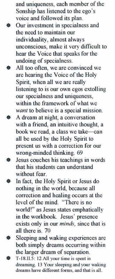 - K. This book is full of “specialness” where God’s Chosen get special treatment. Of course if I see myself as Chosen, the absence of “special” treatment is “testing”—which is also “special.” God’s vast love and oneness doesn’t play favorites. That’s my ego’s game.