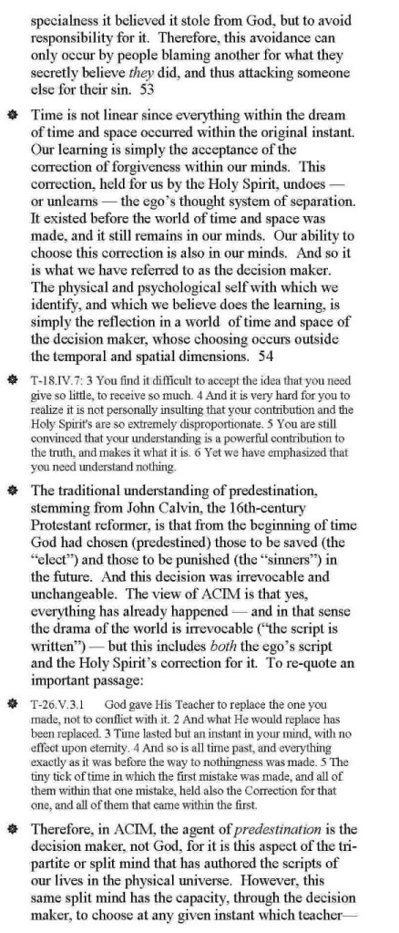 - F. The first key question is: What is God’s nature? If God is Love it’s the most Awesome Love we can imagine. Such a Love is Oneness and Unity – not Chosen and Un-chosen. His Love is already connected to all His Creation – all that is Reality—in the Holy Instant or the Eternal Now. God’s Love does not depend on our limited sense of “time” to “make the connection.”