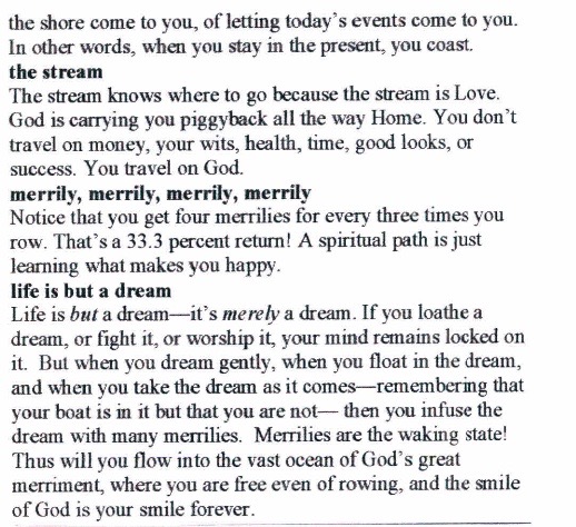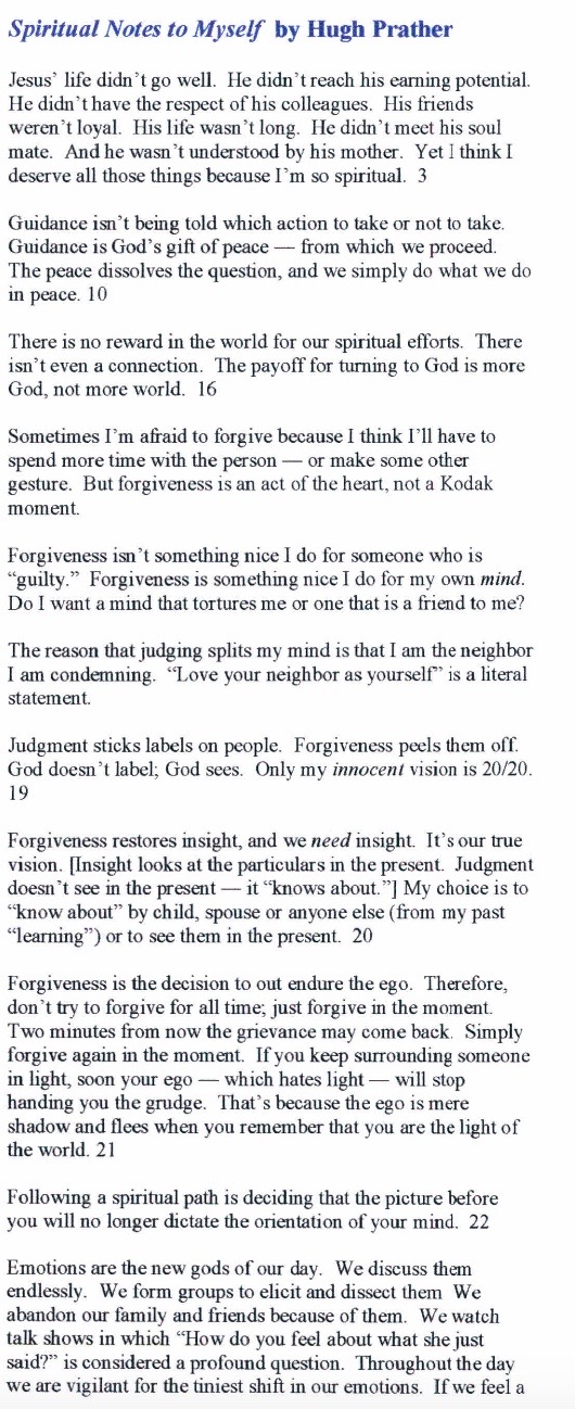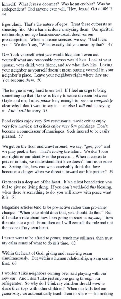 => With all the goodwill in the world, you can’t make anything happen. Don’t force prayer. Simply relax inthe presence of the God you half believe in and ask for a touch of folly. (196)