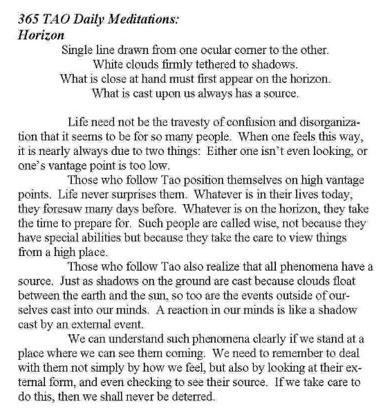 Here, the particular outcome of one’s life is less relevant. One is ready to live and ready to die. At this point in the center of the universe, it is always a good day to die and a good day to live. page 110
