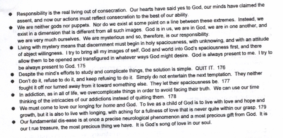 => In Christ Jesus freedom from fear empowers us to let go of the desire to appear good, so that we can movefreely in the mystery of who we really are. (147)